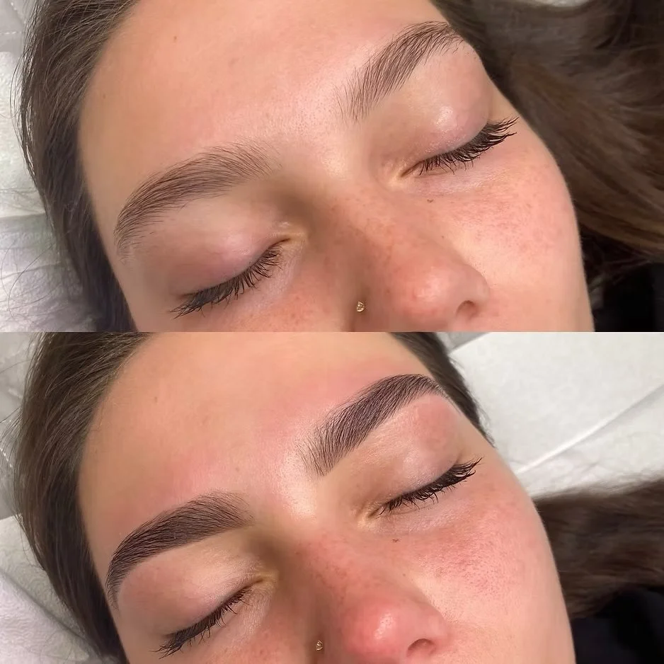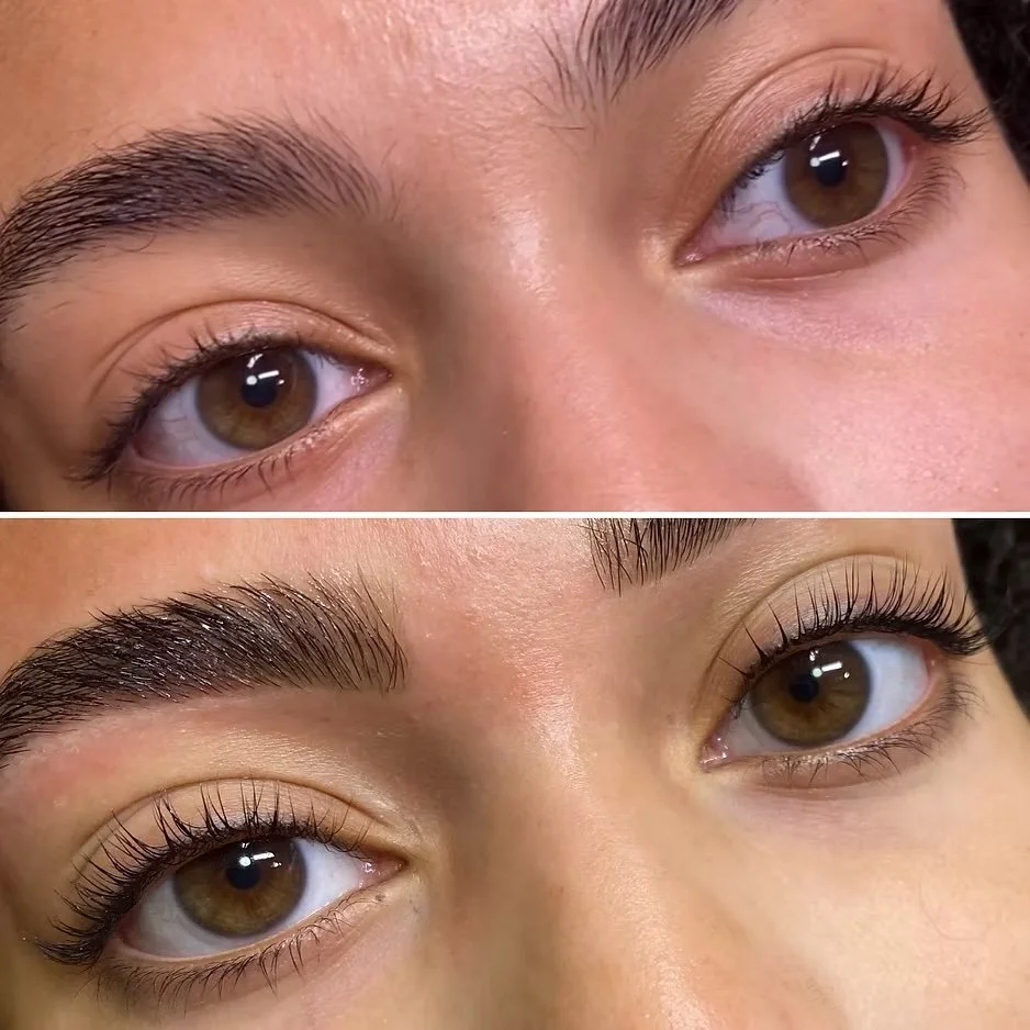 A full brow transformation, including lamination, hybrid tinting, and waxing for long-lasting color and lift, plus a nourishing serum.